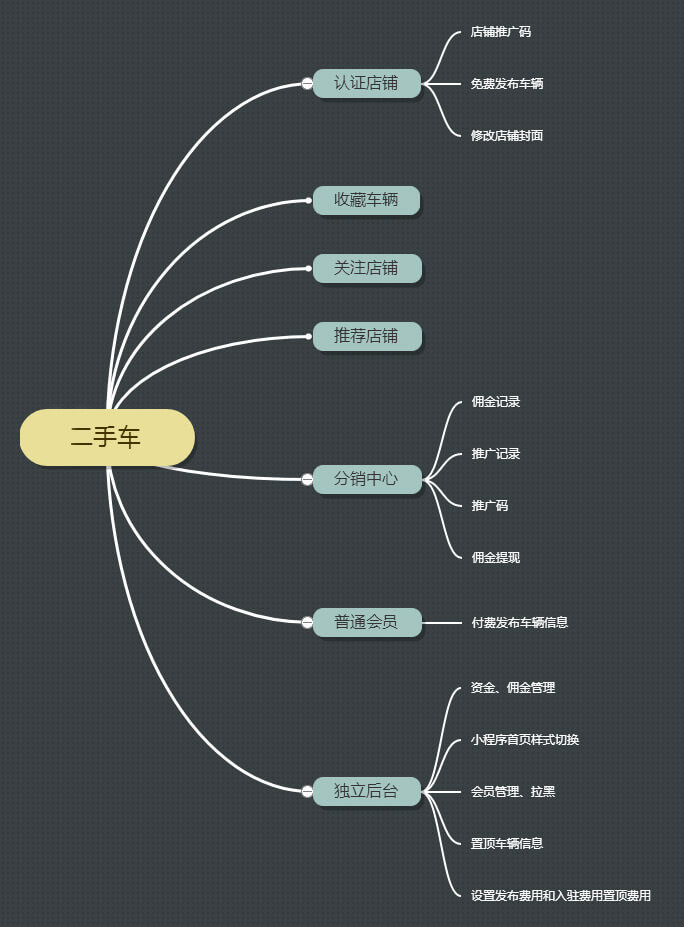 认证店铺 店铺推广码 免费发布车辆 修改店铺封面 收藏车辆 关注店铺 推荐店铺 分销中心(佣金记录、推广记录、推广码、佣金提现)普通会员(付费发布车辆)